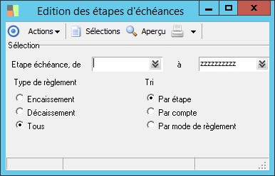(Sage FRP 1000 Comptabilité) Menu Comptabilité > Paramètres > Echéancier > Edition des étapes d'échéances