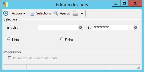 Il est possible d'éditer une liste des tiers ou de faire une édition fiche par fiche.