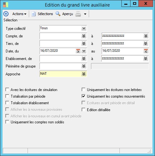 Cocher cette case permet de prendre en compte les écritures de simulation pour l'édition du grand livre général.