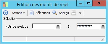 Ouvrela fenêtre Lancement de l'édition des motifs de rejet .Présentation