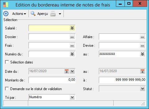 (Sage FRP 1000 Comptabilité) Menu Notes de Frais > Analyses > Edition du bordereau interne de notes de frais