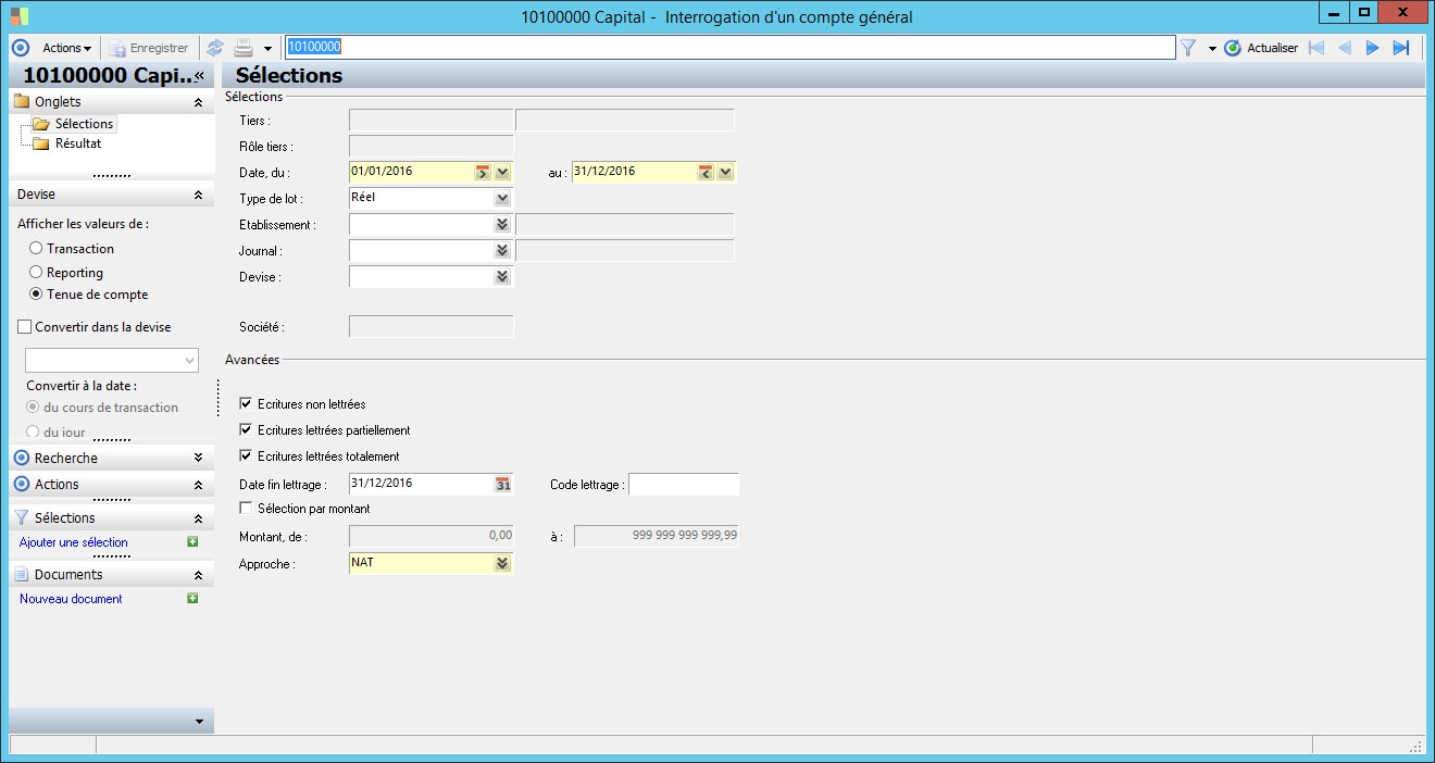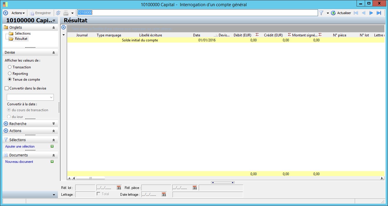 Les zones Type de lot , Compte général et Journal doivent être obligatoirement renseignées. |