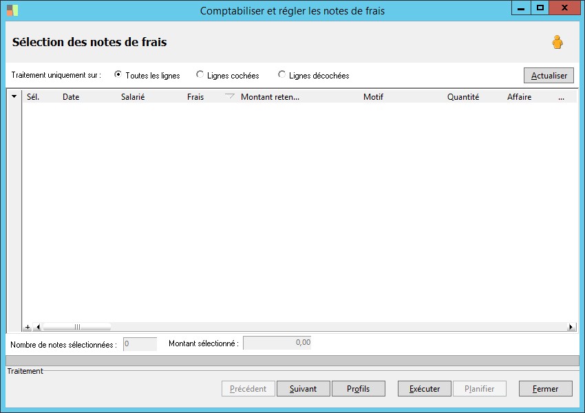 Les notes de frais proposées à la sélection sont celles qui répondent aux critères de sélection saisis.
