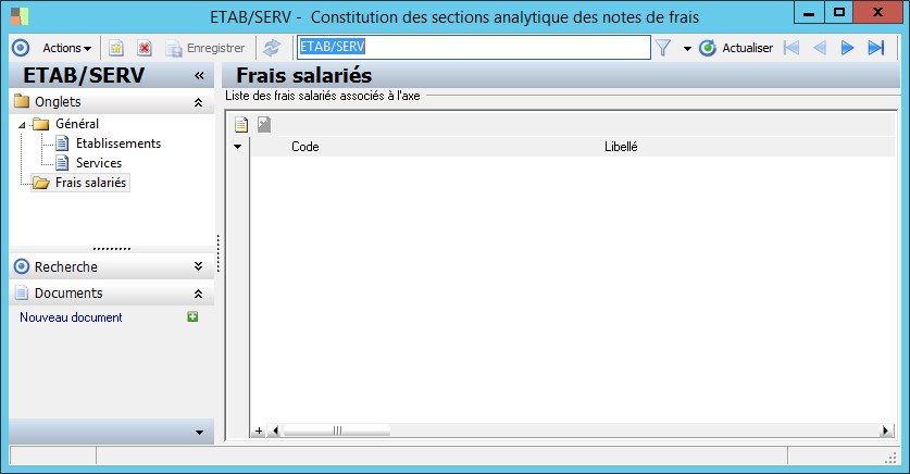 (Sage FRP 1000 Comptabilité) Menu Notes de Frais > Fichiers de base > Constitution des sections analytique des notes de frais