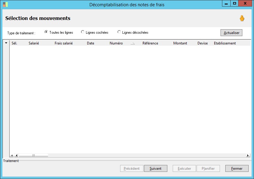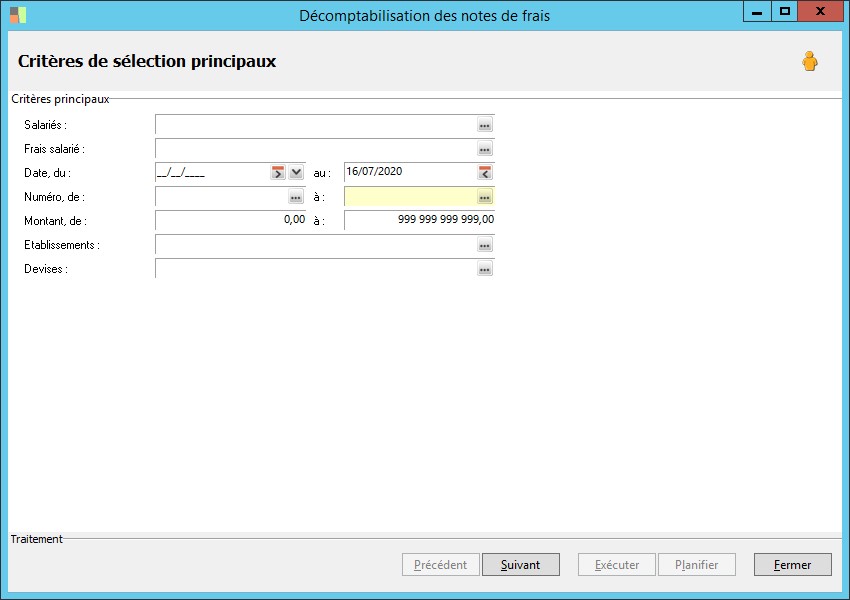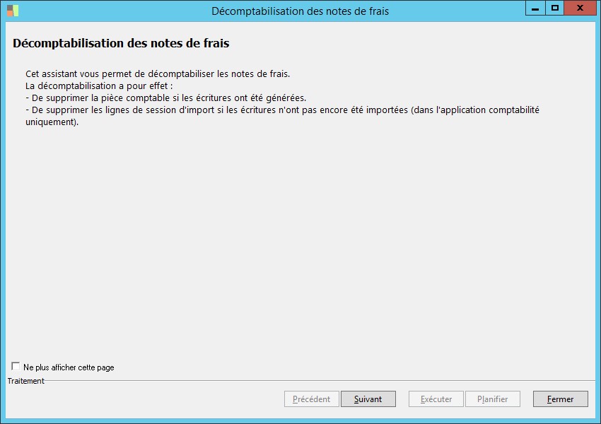 (Sage FRP 1000 Comptabilité) Menu Notes de Frais > Outils > Décomptabilisation des notes de frais