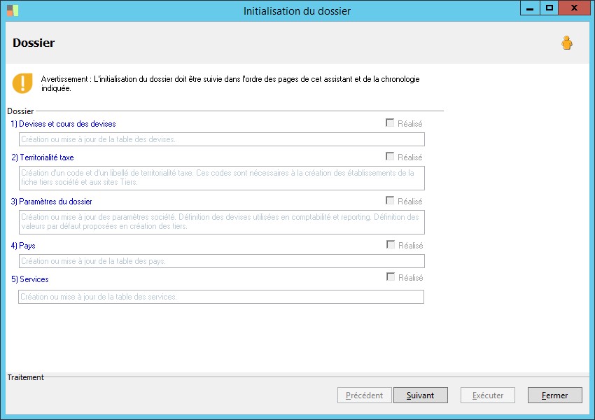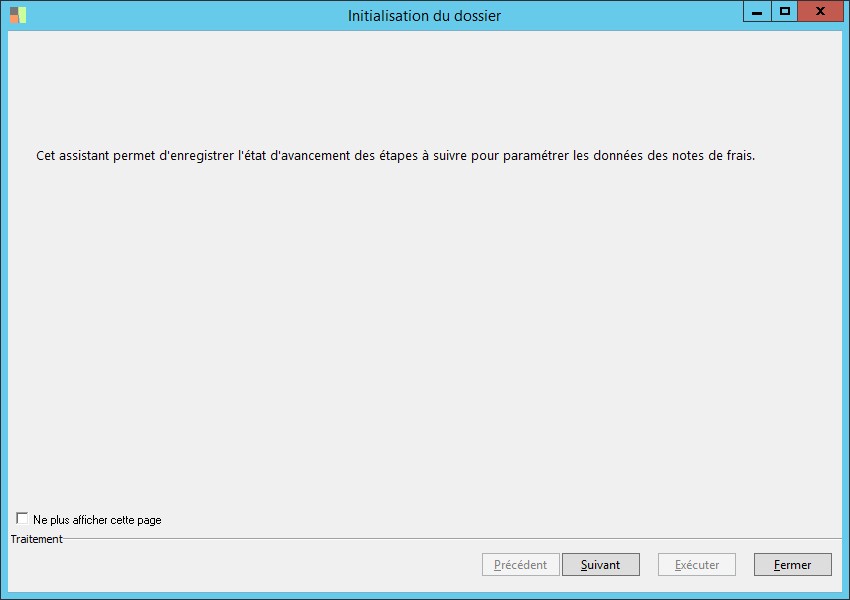 (Sage FRP 1000 Comptabilité) Menu Notes de Frais > Outils > Initialisation du dossier