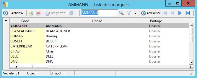 (Sage FRP 1000 Immobilisations) Menu Immobilisations > Fichiers de base > Liste des marques