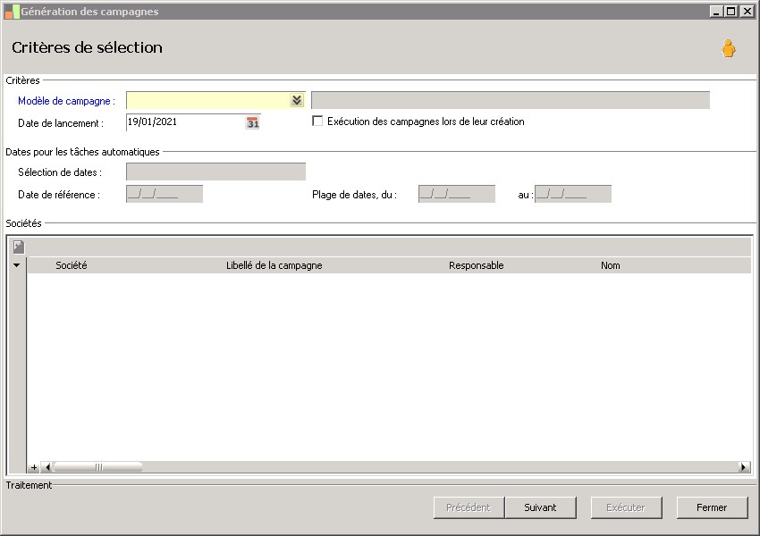 (Sage FRP 1000 Suite Financière) Menu Campagne > Campagnes > Génération des campagnes
