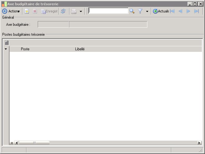 (Sage FRP 1000 Suite Financière) Menu Budget > Paramètres > Axe budgétaire de trésorerie