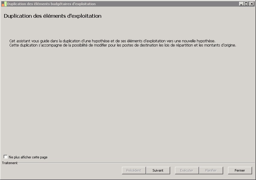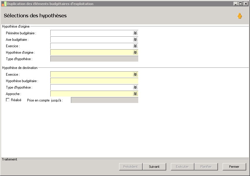(Sage FRP 1000 Suite Financière) Menu Budget > Hypothèses > Duplication des éléments budgétaires d'exploitation