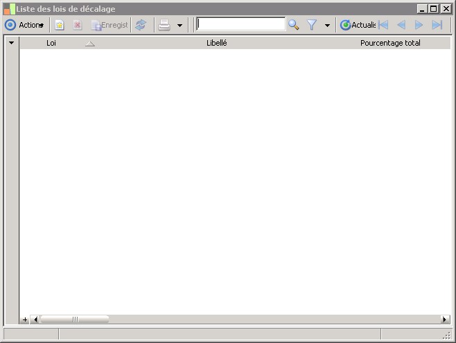 (Sage FRP 1000 Suite Financière) Menu Budget > Paramètres > Liste des lois de décalage