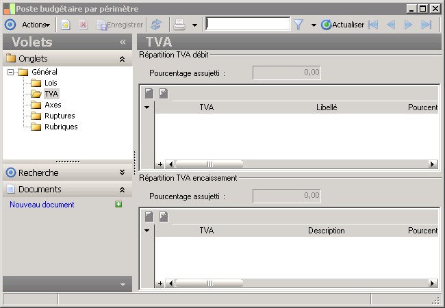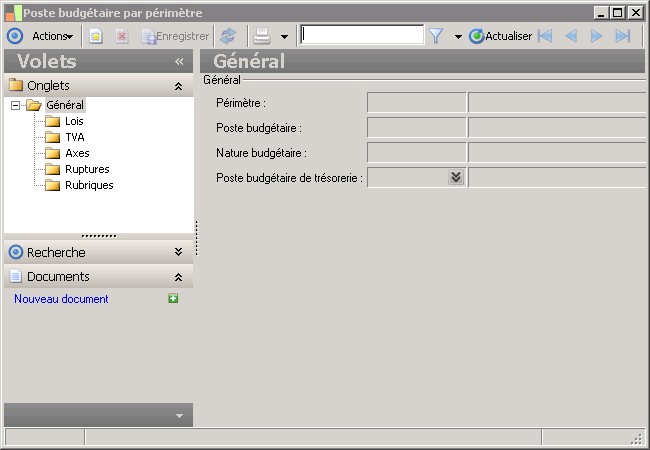 (Sage FRP 1000 Suite Financière) Menu Budget > Paramètres > Poste budgétaire par périmètre