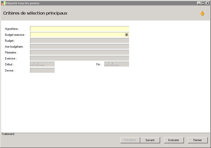 (Sage FRP 1000 Suite Financière) Menu Budget > Hypothèses > Répartir tous les postes