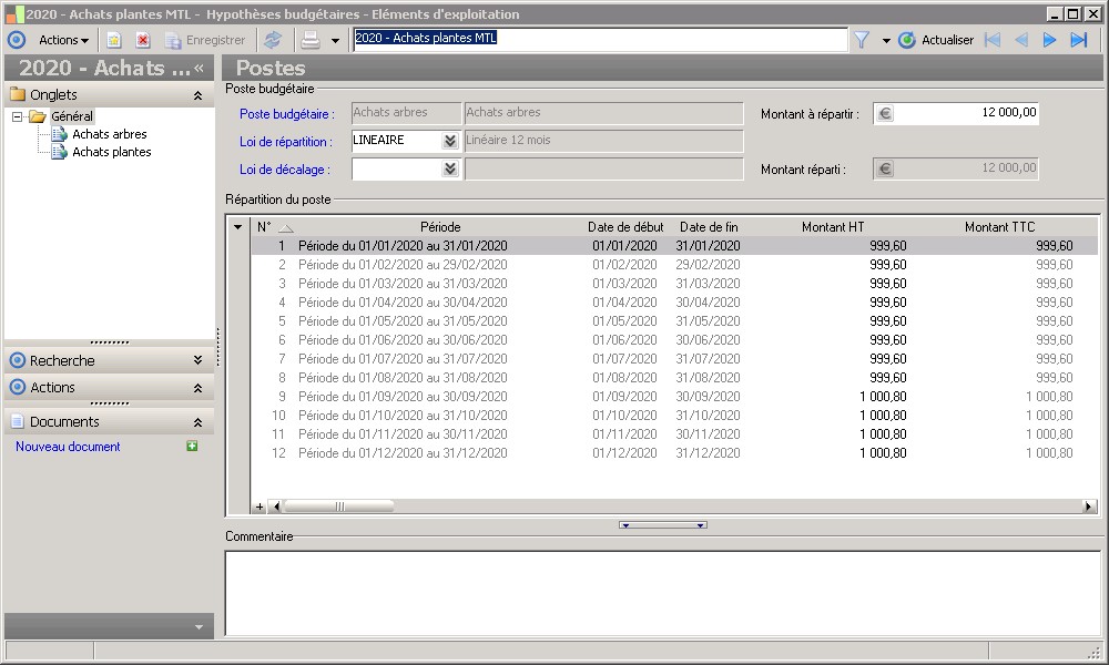 La loi de répartition permet de répartir un montant exercice sur les périodes liées à cet exercice. |