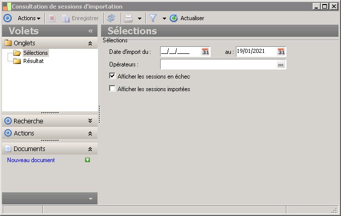 (Sage FRP 1000 Suite Financière) Menu Budget > Initialisation > Consultation de sessions d'importation