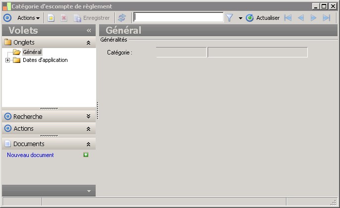 (Sage FRP 1000 Suite Financière) Menu Comptabilité > Paramètres > Règlements > Catégorie d'escompte de règlement