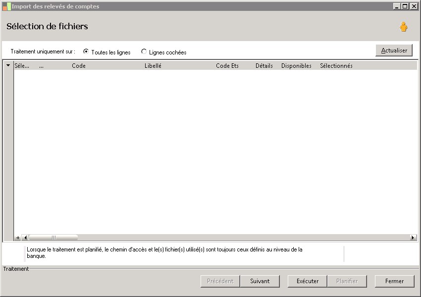 Permet de sélectionner une liste de banques. Seules les banques actives qui ont des comptes "société" sont affichées. |