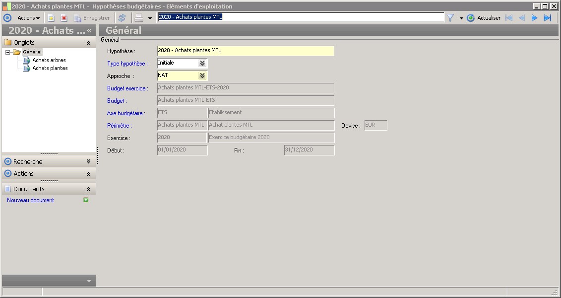 L'hypothèse budgétaire est élaborée dans le cadre d'un budget pour un exercice. |