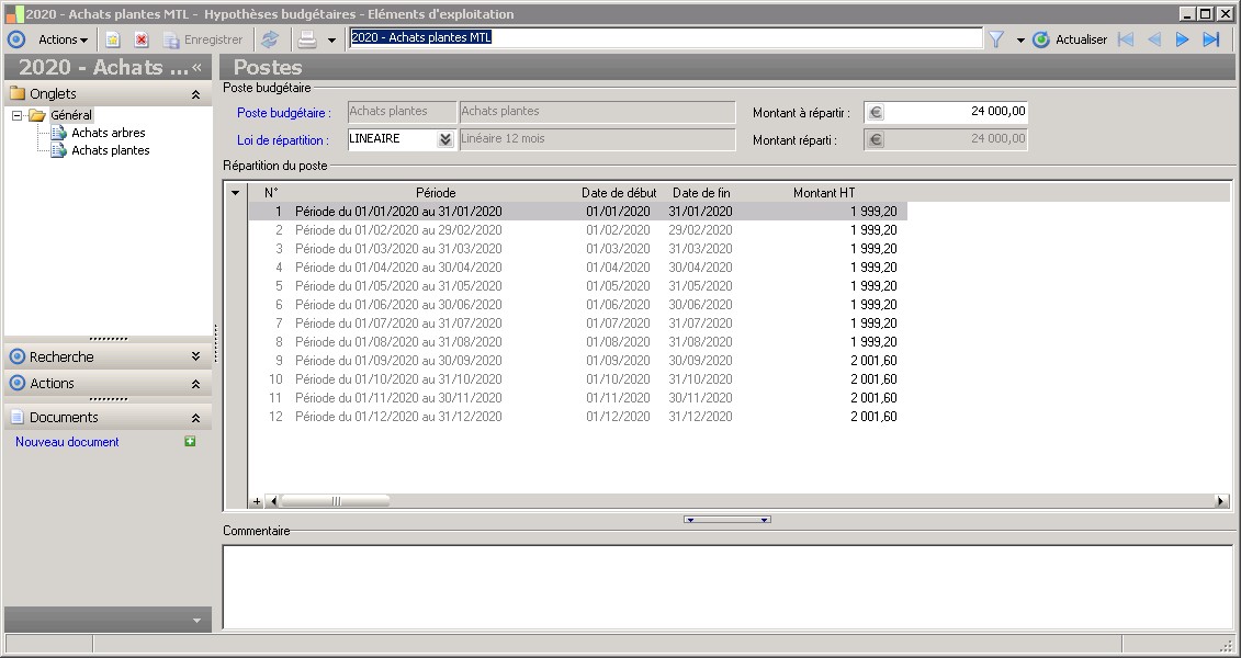 La loi de répartition permet de répartir un montant exercice sur les périodes liées à cet exercice. |