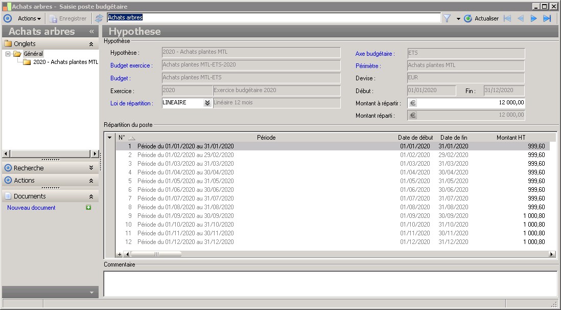 La loi de répartition permet de répartir un montant exercice sur les périodes liées à cet exercice. |