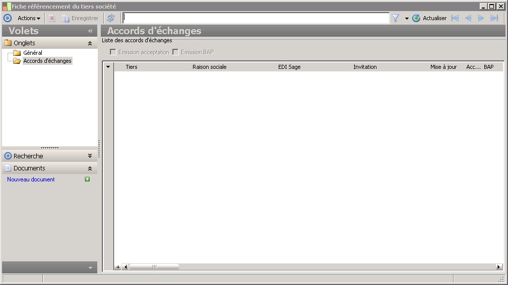 (Sage FRP 1000 Suite Financière) Menu Processus Opérationnels > Paramètres > Société > Fiche référencement du tiers société