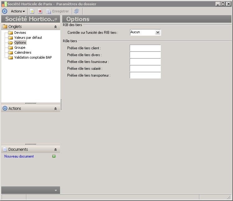 Ce champ permet de renseigner un préfixe pour les rôles tiers de type Tiers Divers.Lors de la création d'un rôle tiers Divers, le code du rôle tiers proposé par défaut correspondra alors au préfixe paramétré suivi du code du tiers.Si aucun préfixe n'est paramétré, le code proposé par défaut sera égal au code du tiers. |