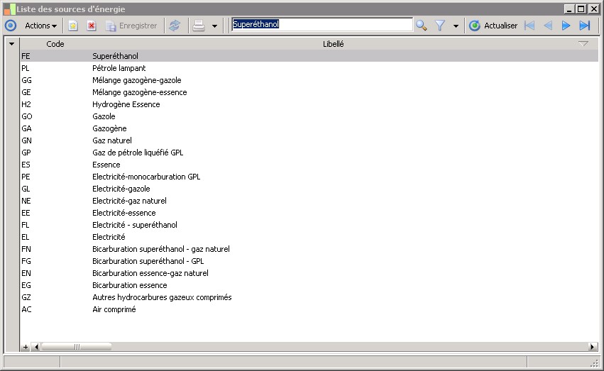 (Sage FRP 1000 Suite Financière) Menu Immobilisations > Fichiers de base > Liste des sources d'énergie