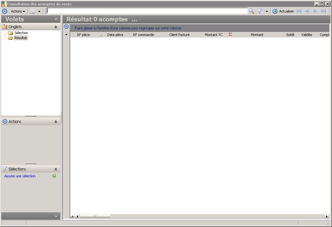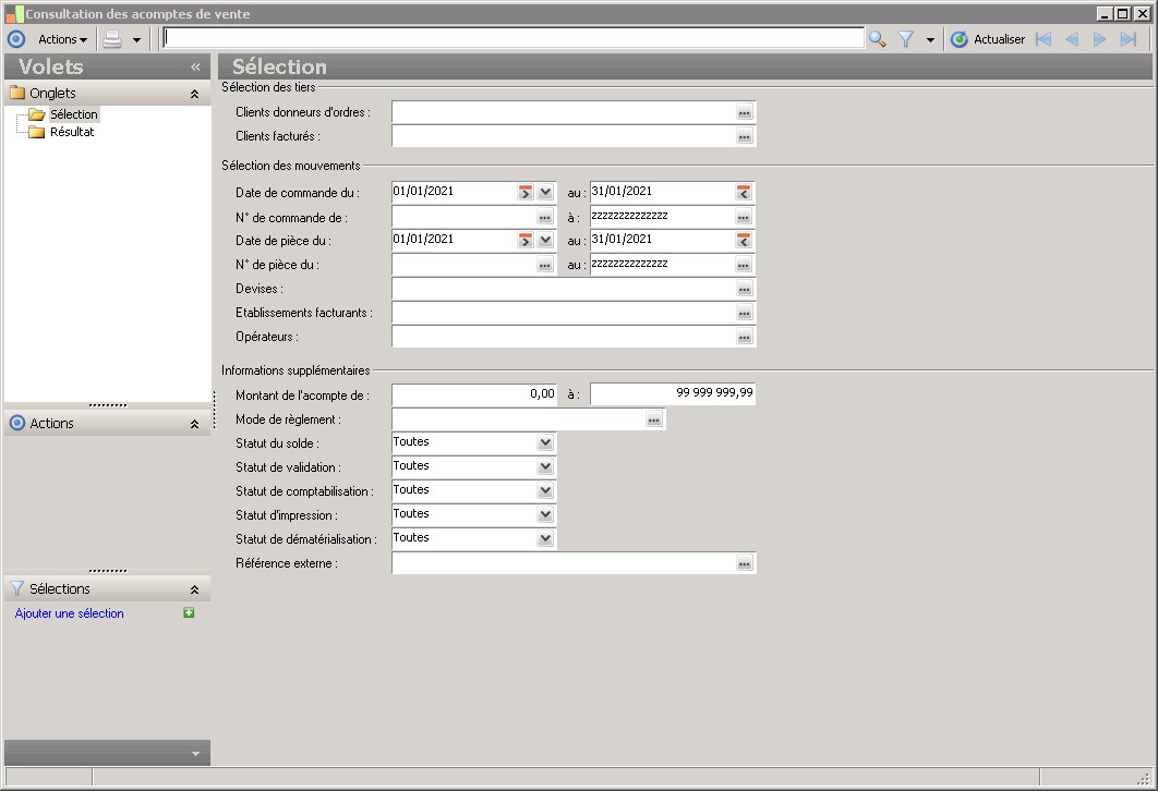 (Sage FRP 1000 Suite Financière) Menu Processus Opérationnels > Ventes > Facturation > Consultation des acomptes de vente