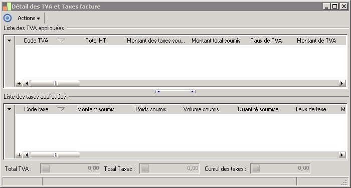 (Sage FRP 1000 Suite Financière) Menu Processus Opérationnels > Ventes > Commandes > Détail des TVA et Taxes facture