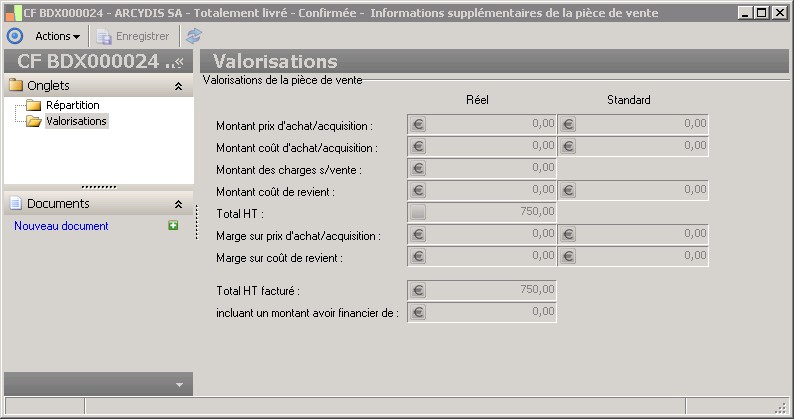 La marge sur prix d'achat-acquisition standard représente la différence entre le montant net HT de la commande vente et son montant prix d'achat-acquisition standard. Elle permet de faire ressortir la marge effective par rapport au prix d'achat-acquisition standard abstraction faite des charges d'achat comme de vente.Elle ne doit pas être confondue avec une marge standard sur prix d'achat-acquisition standard qui représenterait la différence entre le montant prix de vente standard et le prix d'achat-acquisition standard.Elle est exprimée en devise de tenue de compte. |