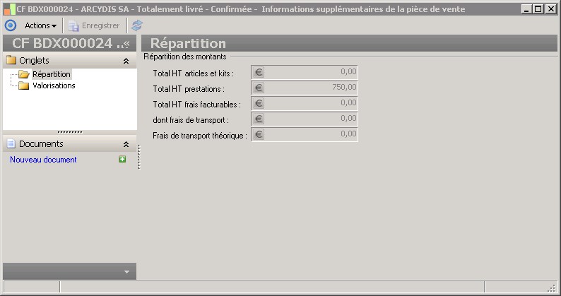 A l'instar du prix théorique existant au niveau des lignes produit de la commande, le montant de frais de transport théorique représente le montant de frais de transport proposé par défaut en saisie de pièce commerciale lorsque la gestion des frais de transport est paramétrée au niveau du système.Lorsque le montant du frais de transport est modifié au niveau de la saisie de ligne de commande, cela ne modifie pas la valeur du montant de frais théorique : il est ainsi possible d'analyser l'écart entre la valeur théorique et la valeur réelle.Rappel : Il est possible de consulter les paramètres intervenant dans le calcul automatique des frais de transport au niveau du menu Actionde transportdes paramètres de transport. |