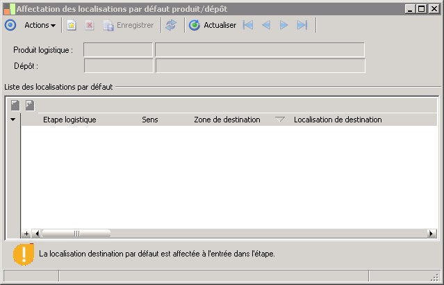 Cette information représente la zone logistique de la localisation destination par défaut.Rappel : la localisation destination est affectée à l'entrée dans l'étape. |