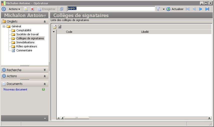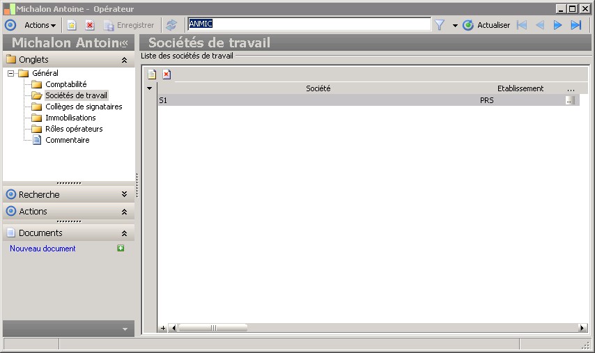 Dans la fenêtre Opérateurs, la présence des fonctions décrites dans ce contexte dépend des applications installées. |