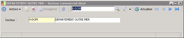 (Sage FRP 1000 Suite Financière) Menu Processus Opérationnels > Paramètres > Clients > Secteur commercial client