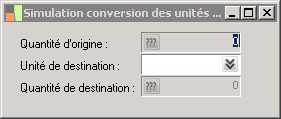 (Sage FRP 1000 Suite Financière) Menu Processus Opérationnels > Paramètres > Généraux > Unités > Simulation conversion des unités commerciales
