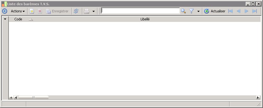 (Sage FRP 1000 Suite Financière) Menu Immobilisations > Fichiers de base > Liste des barèmes T.V.S.