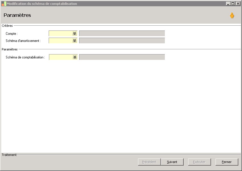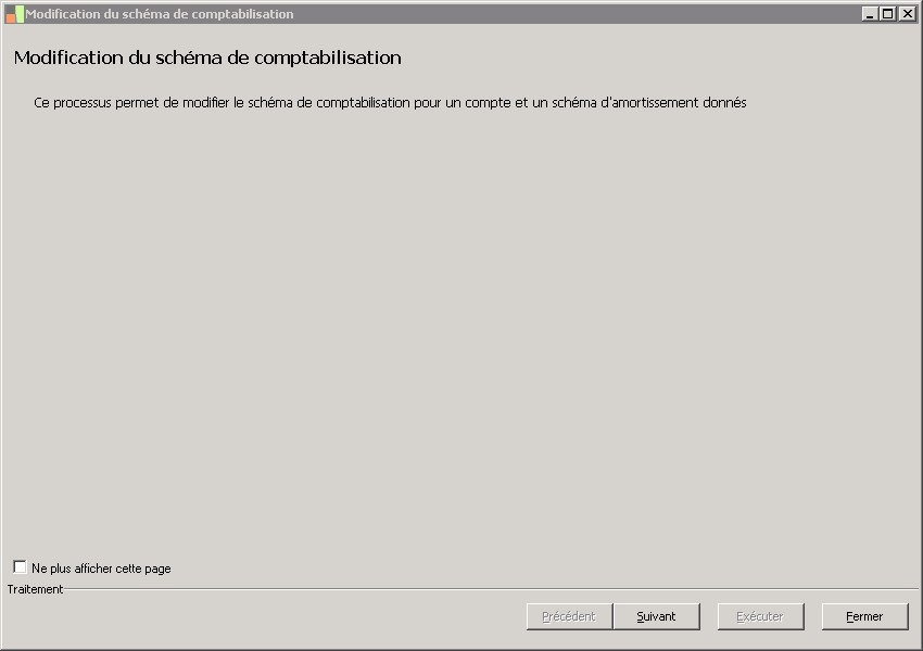 (Sage FRP 1000 Suite Financière) Menu Processus Opérationnels > Paramètres > Comptabilisation > Modification du schéma de comptabilisation
