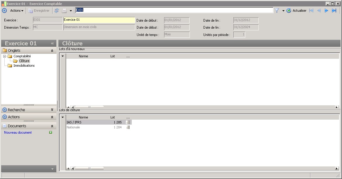 Le code identifie l'exercice de façon unique.Les exercices utilisent les périodes de la dimension temps préalablement créée.On peut avoir autant d'exercices que nécessaire, dans la limite de la dimension temps. |