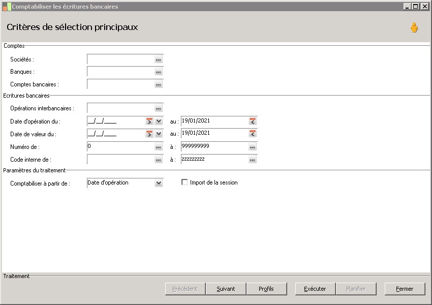 (Sage FRP 1000 Suite Financière) Menu Banque Paiement > Comptabilisation > Comptabiliser les écritures bancaires