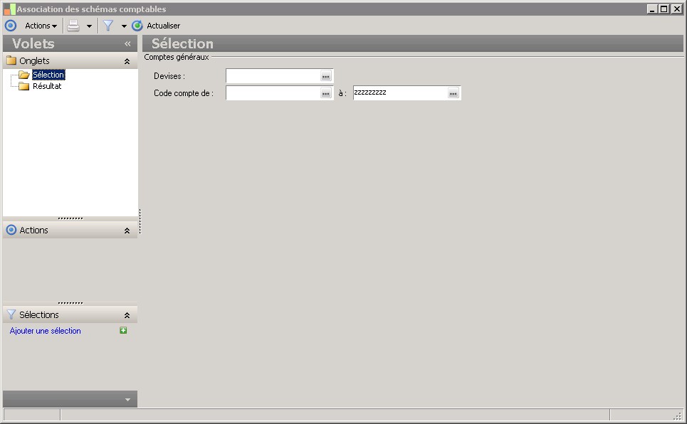 (Sage FRP 1000 Suite Financière) Menu Banque Paiement > Paramètres > Comptabilisation > Association des schémas comptables