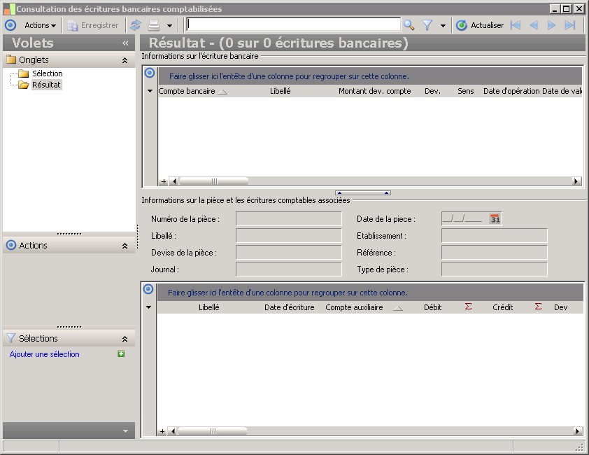 (Sage FRP 1000 Suite Financière) Menu Banque Paiement > Comptabilisation > Consultation des écritures bancaires comptabilisées