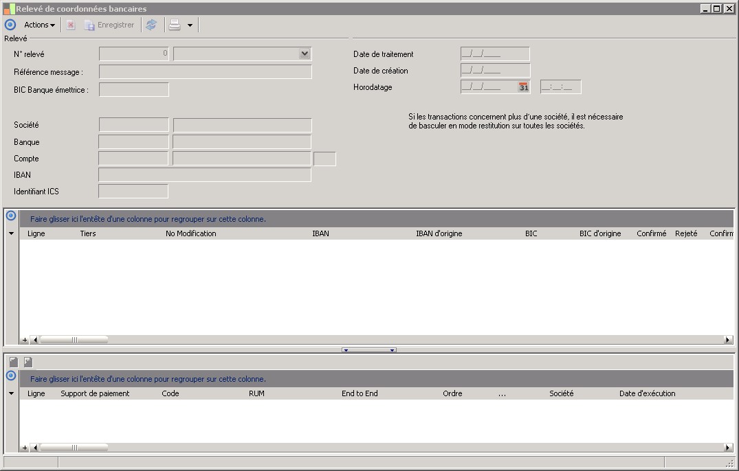 (Sage FRP 1000 Suite Financière) Menu Banque Paiement > Relevés et Notifications > Relevés de coordonnées bancaires > Relevé de coordonnées bancaires