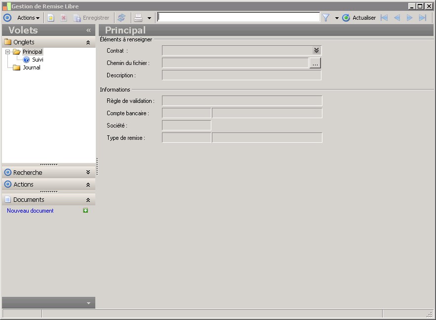 (Sage FRP 1000 Suite Financière) Menu Banque Paiement > Remises bancaires > Gestion de Remise Libre