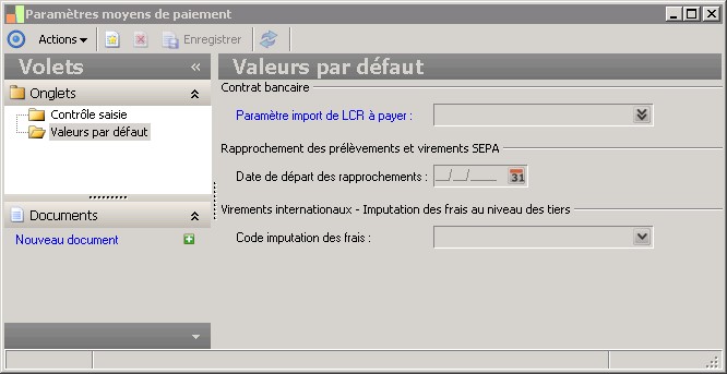 (Sage FRP 1000 Suite Financière) Menu Banque Paiement > Paramètres > Paramètres > Paramètres moyens de paiement