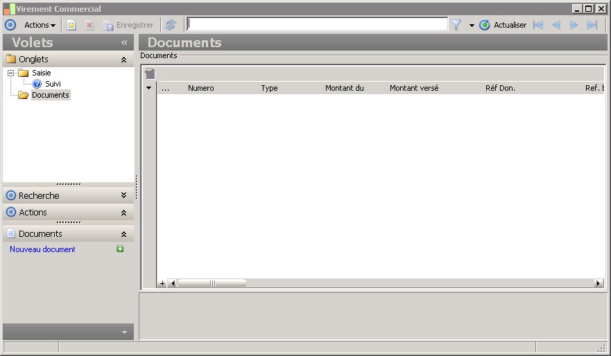 (Sage FRP 1000 Suite Financière) Menu Banque Paiement > Ordres bancaires > Consultation des ordres par type > Virement Commercial