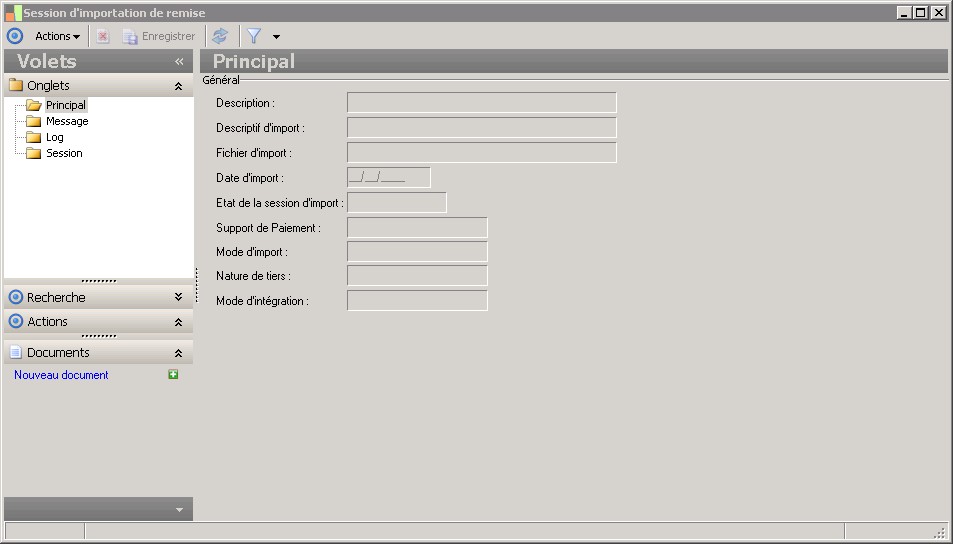 (Sage FRP 1000 Suite Financière) Menu Banque Paiement > Ordres bancaires > Session d'importation de remise