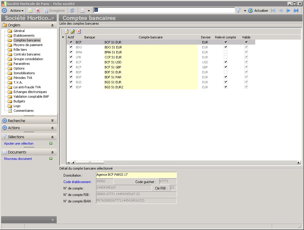 Liste des comptes bancaires |