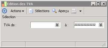Cette fonction permet d'éditer la liste des TVA en fonction de certains critères de sélection. Elle est lancée par la fonction Impression de la liste et de la fiche des TVA, elles-mêmes accessibles au niveau du menu Paramètres / Généraux / TVA et taxes / TVA.