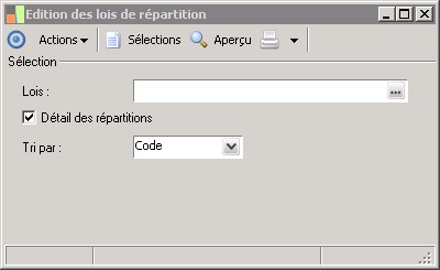 Permet de sélectionner un ordre de présentation pour les lois (code ou libellé). Par défaut, les lois de répartition sont triées par code.