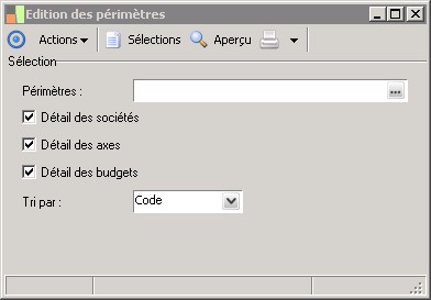 (Sage FRP 1000 Suite Financière) Menu Processus Opérationnels > Paramètres > Société > Edition des périmètres